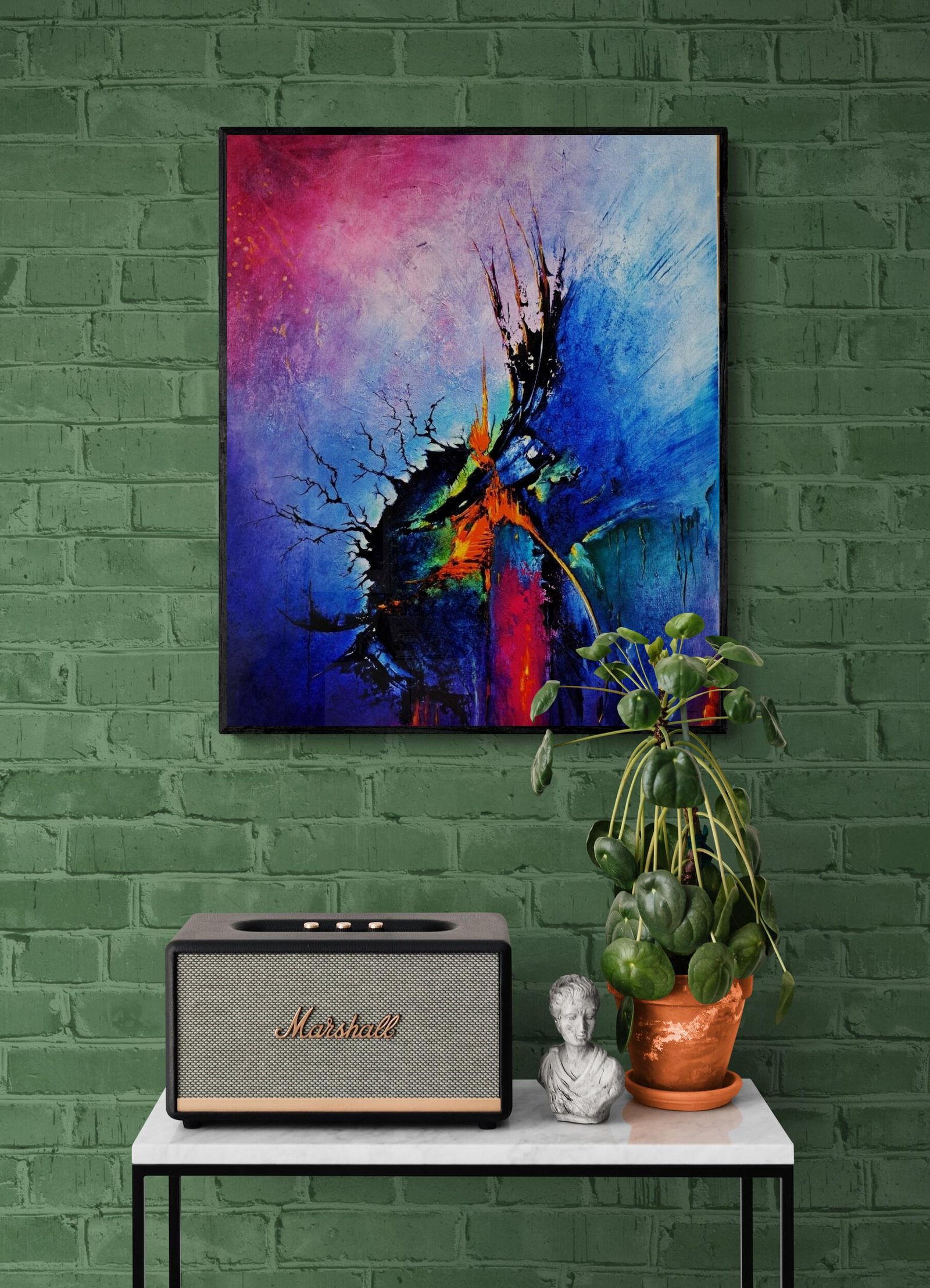 l’acrylique sur une toile de lin d’une qualité exceptionnelle, cette peinture