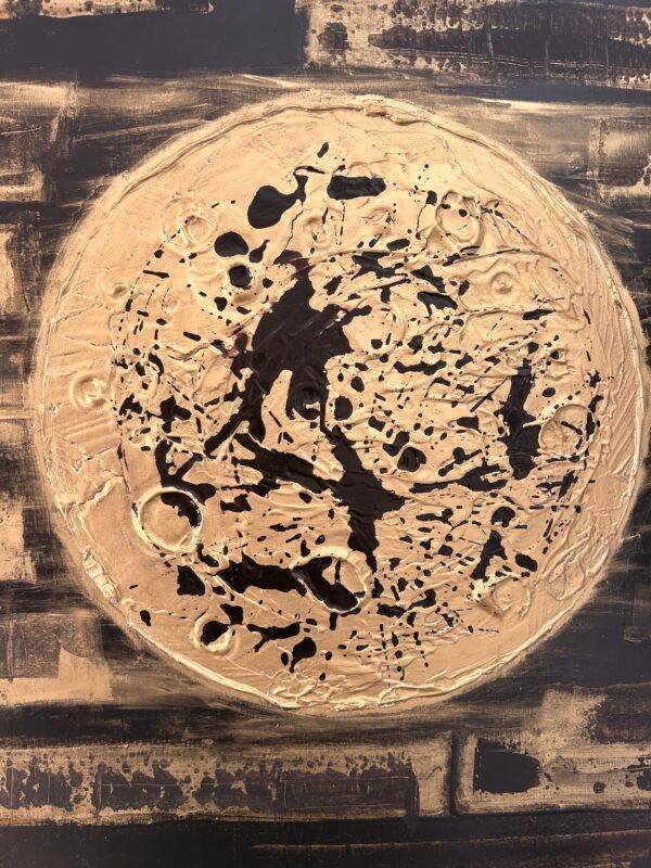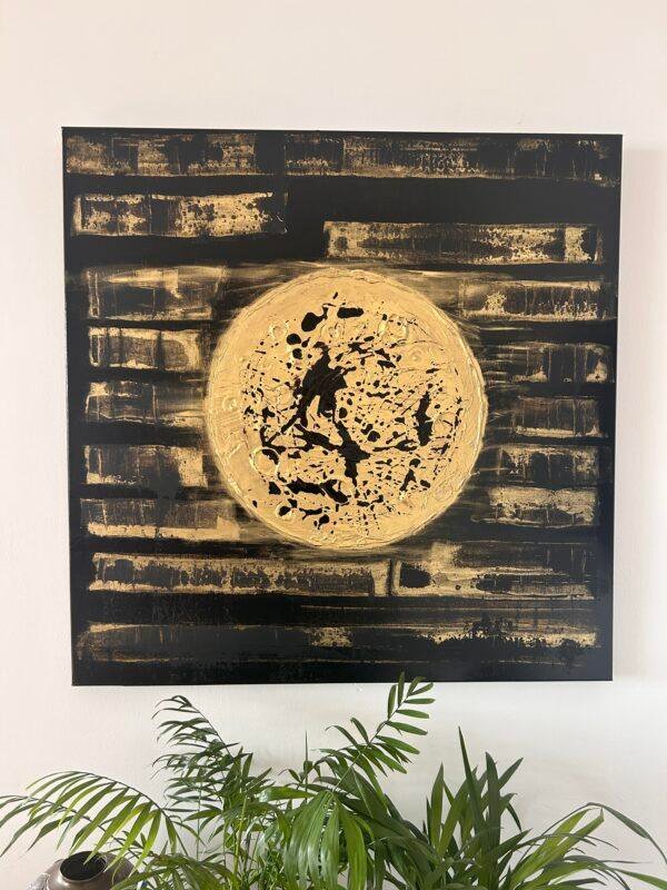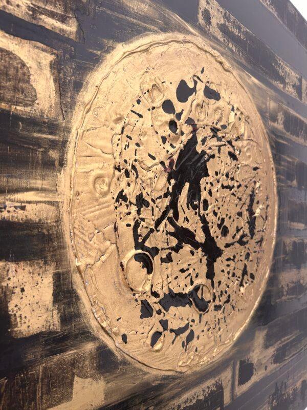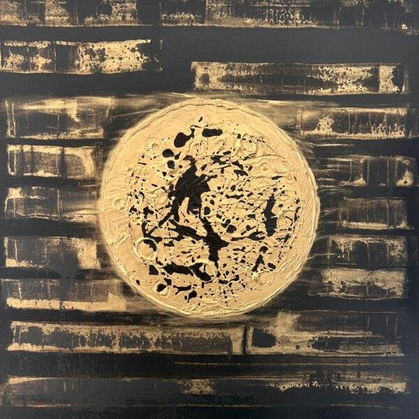 Mars2024– 80cm x 80cm – Acrylique, pigments, laque noire, poudre d’or, gesso, encres acryliques