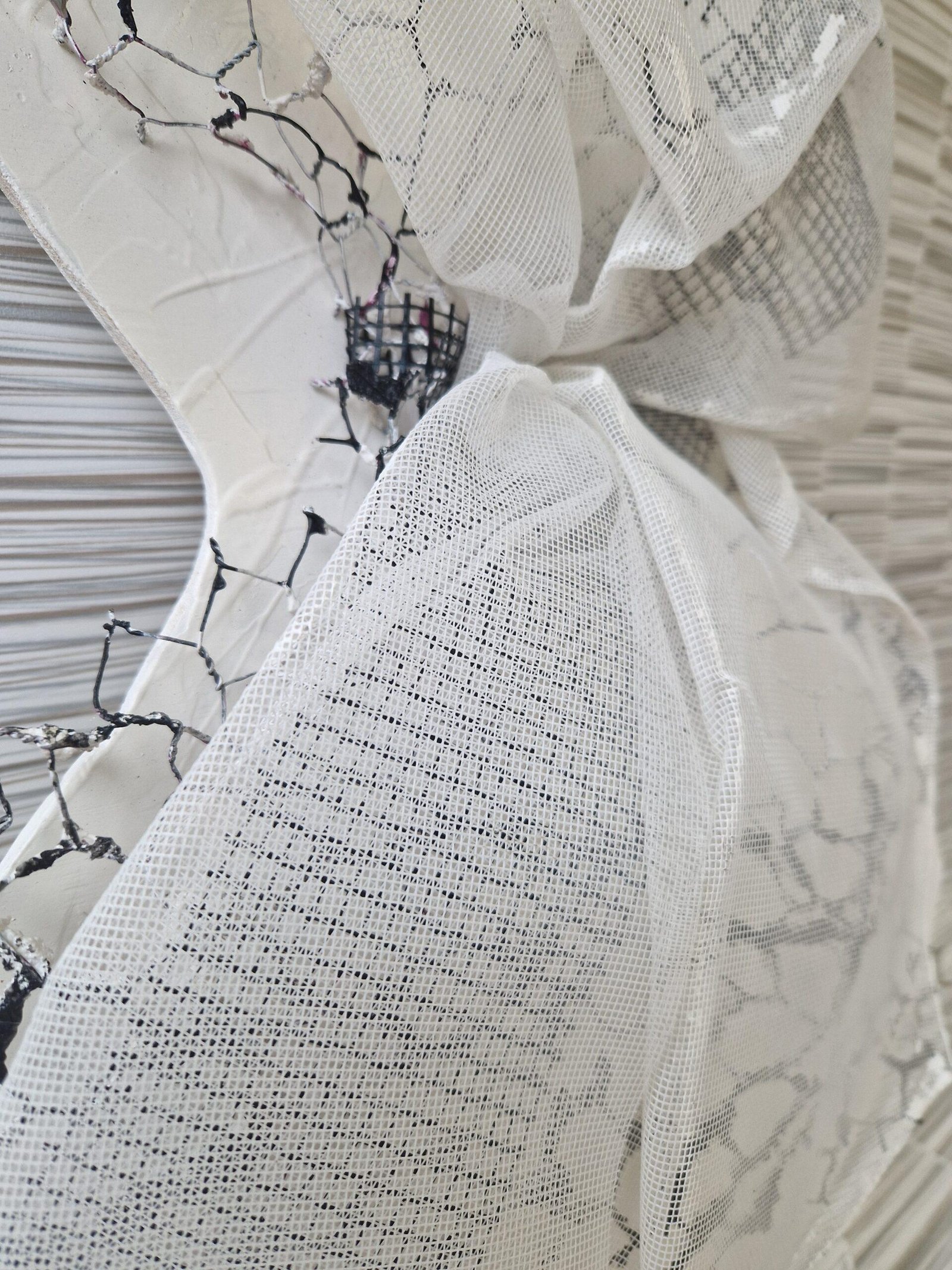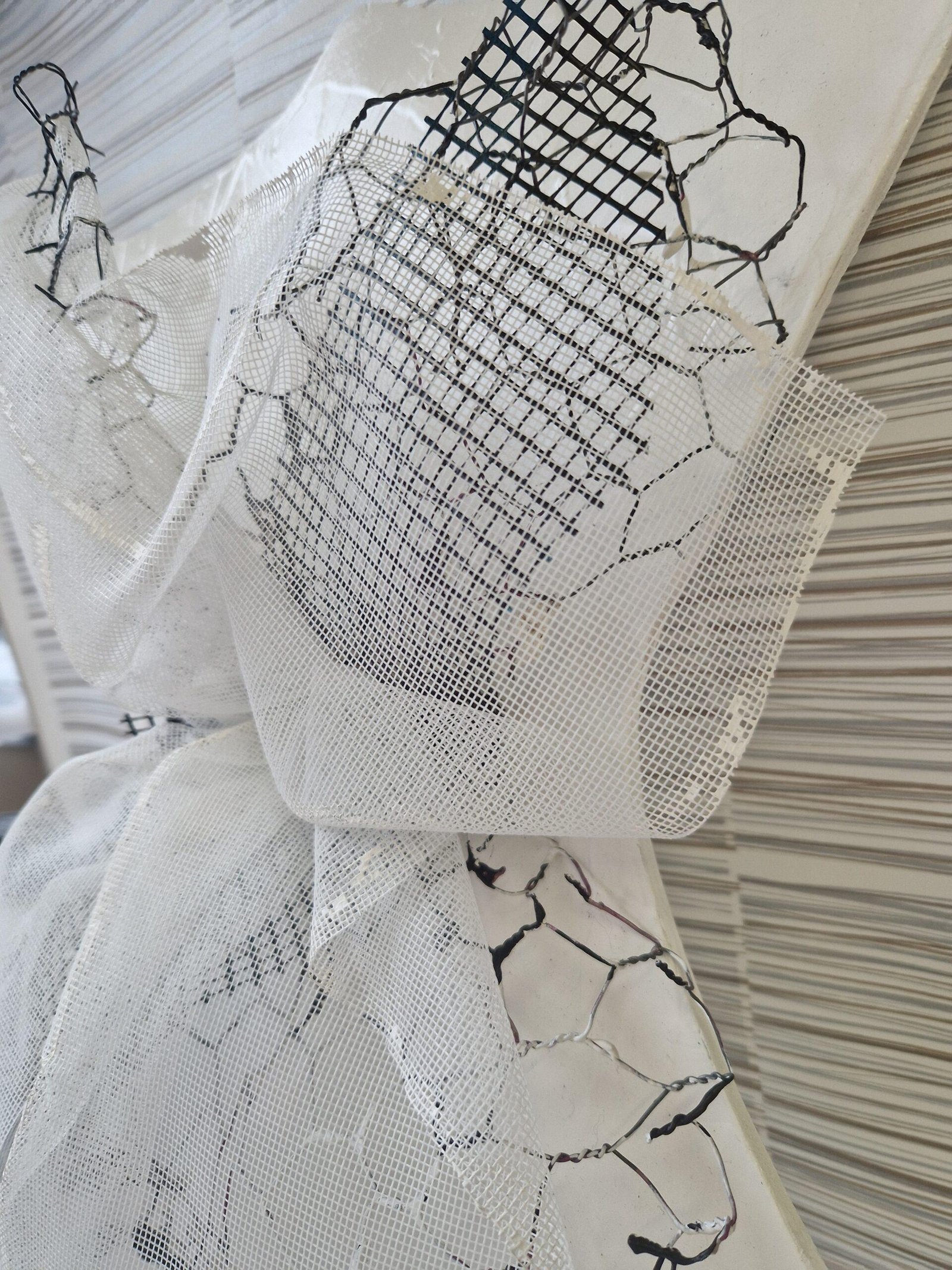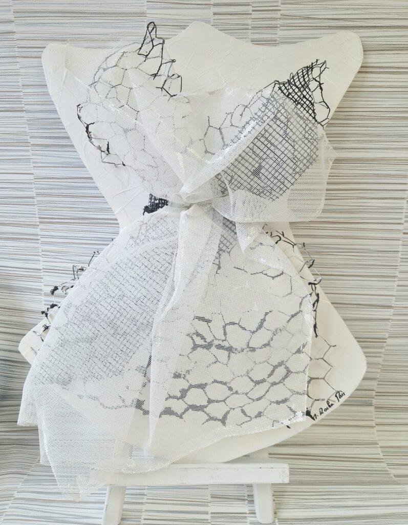 Acrylique sur bois, tulle et grillage