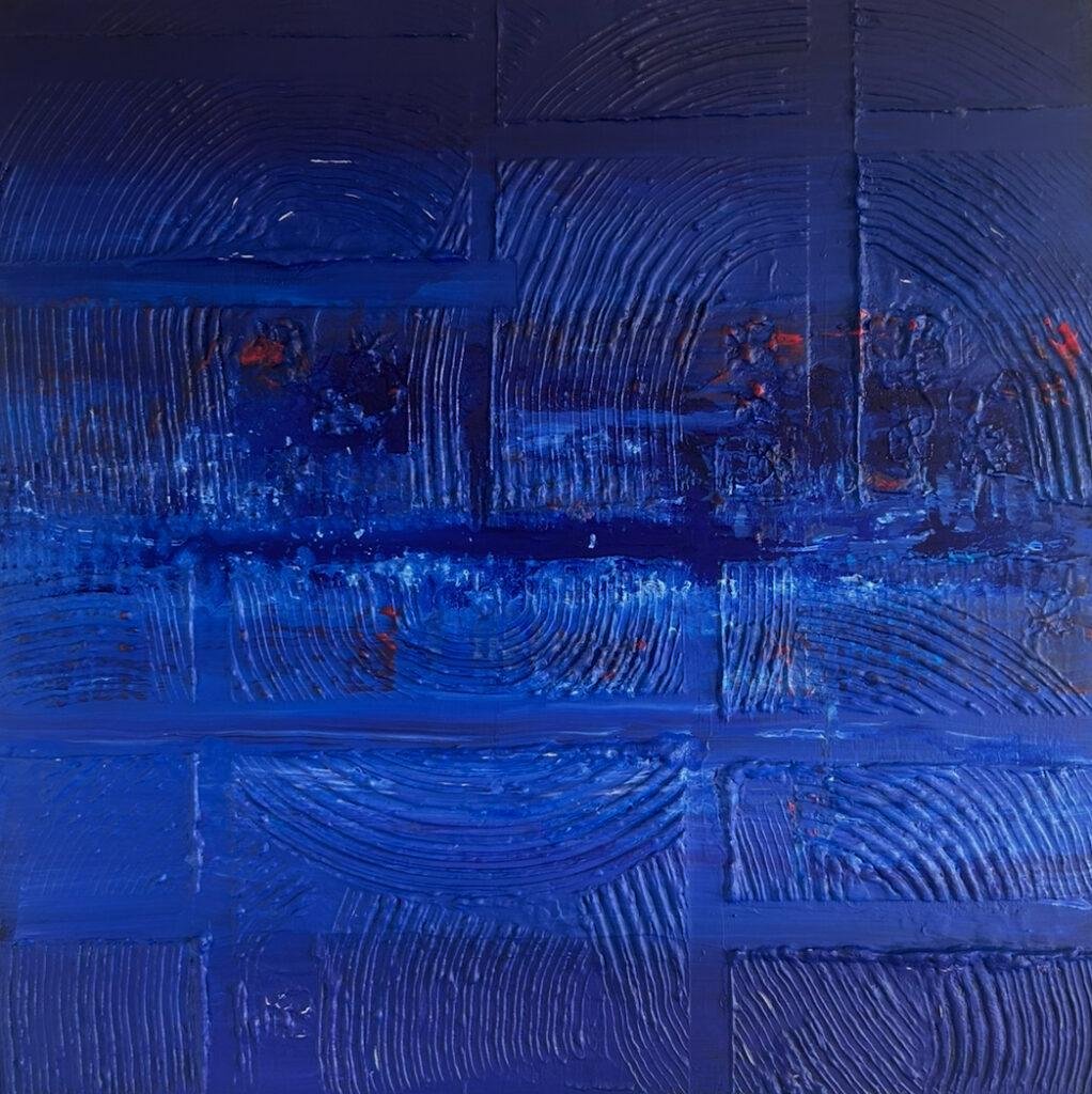 Un bleu abyssal s’étend en cercles vibrants, comme des ondes en expansion.