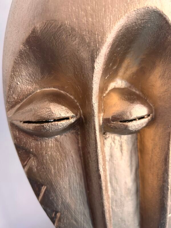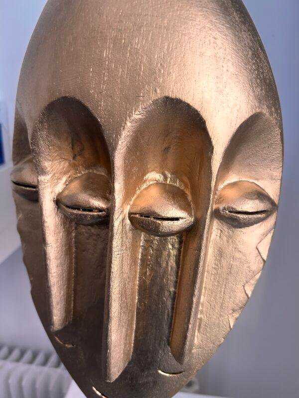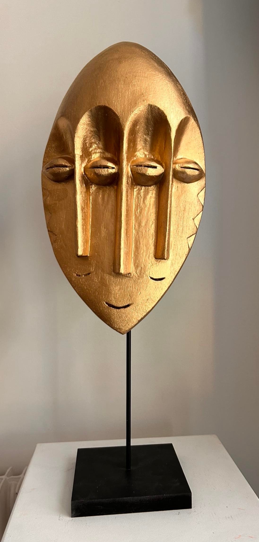 Je peins sur les masques traditionnels pour exprimer à la fois mon attachement à mes origines et mon intérêt pour la transformation et la modernité. C’est aussi une sorte de thérapie : pendant mon enfance j’avais peur des masques traditionnels (comme beaucoup d’africains): les peindre m’aide à dépasser mes peurs et à les transformer en joie. Où que j’aille, je ne vais pas fuir mes origines et mon passé mais chaque expérience me permet de mettre plein de couleurs dans ma vie.