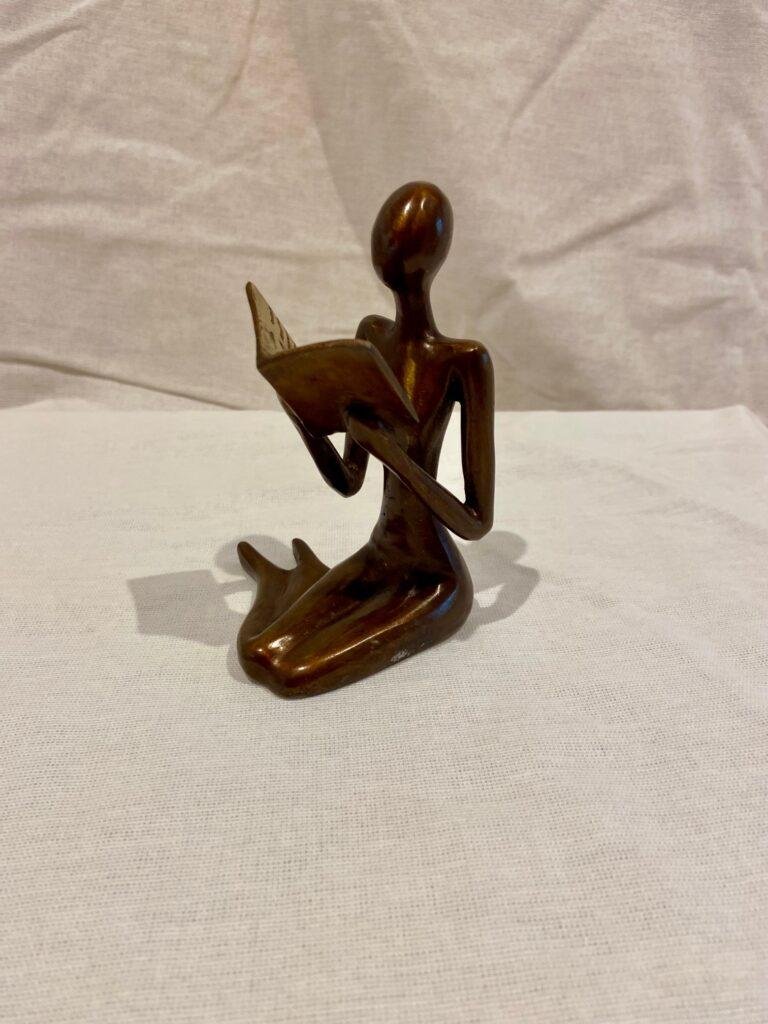 Ces sculptures saisissent un instant suspendu : une lectrice absorbée par son ouvrage, assise dans l’herbe, posée au sol ou installée sur un grimoire.