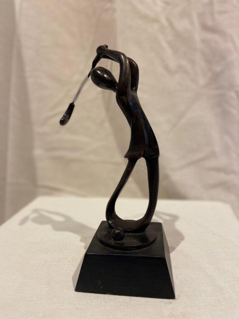 Réalisée en bronze selon la technique traditionnelle de la cire perdue, La Golfeuse est une pièce unique, aux finitions douces et à la patine profonde, soulignant la dynamique et la légèreté du geste.