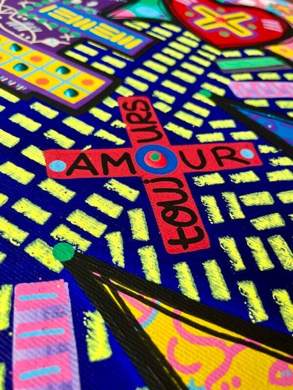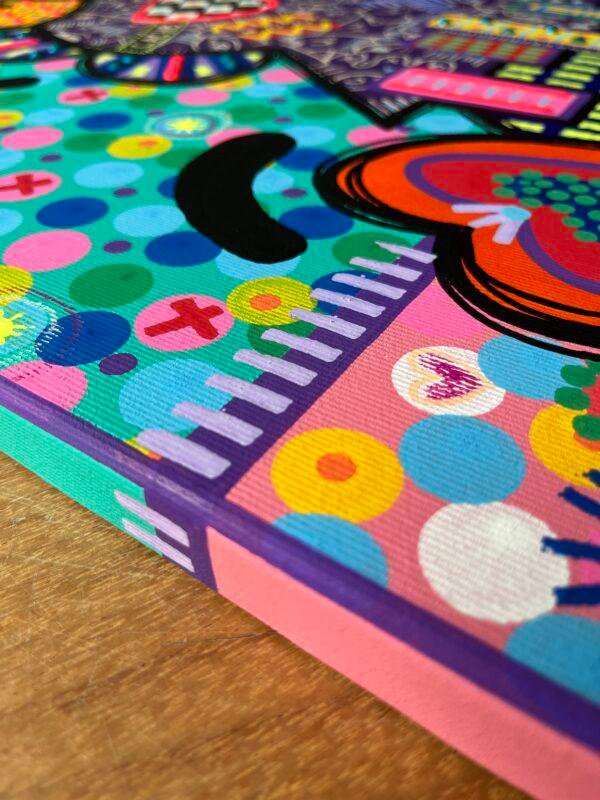 Ce tableau apporte une explosion de joie et de souvenirs colorés, parfait pour revitaliser n’importe quel espace.