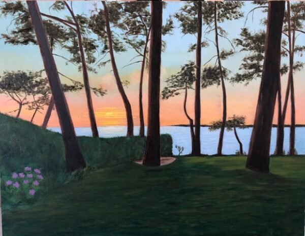 Le soleil éblouissant commence à disparaître dans l’onde apaisée, la nature prend des couleurs simples alors que surviennent les ténèbres