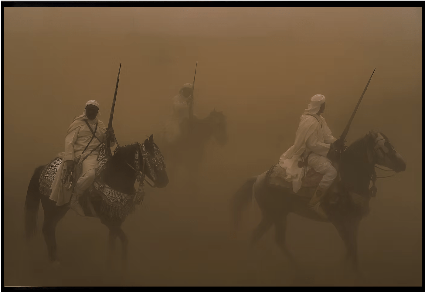 Et soudain, comme une nuée surgie de l’invisible, ils ont déboulé. Les cavaliers. Drapés de blanc, armés de longs fusils étincelants, les turbans battant comme des flammes.