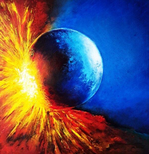 l’astéroïde qui a frappé le Mexique, exprime la collision violente entre deux