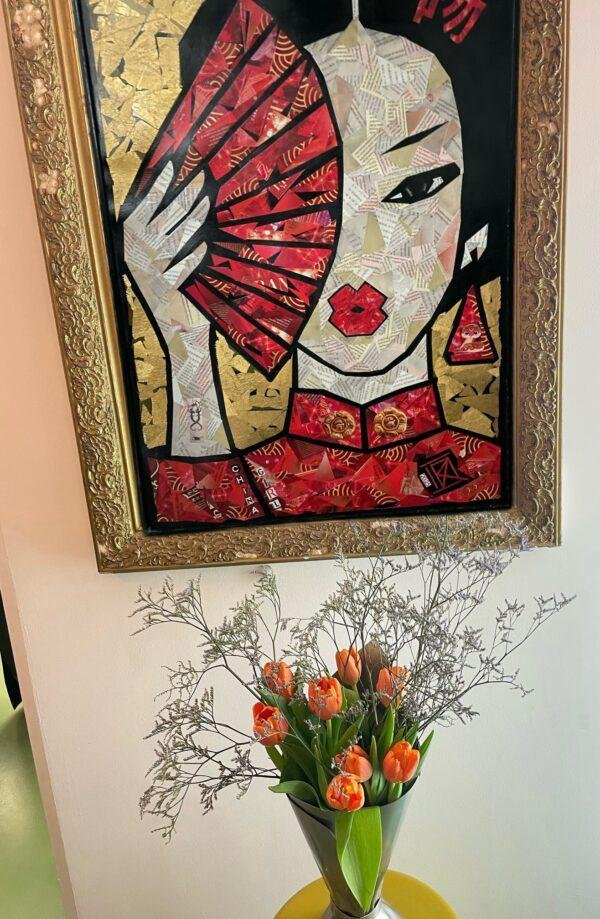Réaliser son portrait, cela fait longtemps que j’y ai songé. Admirative de cette culture, de la langue que j’ai toujours rêvé d’apprendre, et enrichie par mes précieuses amitiés avec des femmes chinoises, j’ai voulu exprimer dans cette œuvre une vision personnelle et poétique. My China Girl imaginaire est une célébration de tout ce qui me fascine : les traditions, la modernité, la force et la grâce, les couleurs et les symboles qui traversent les siècles.