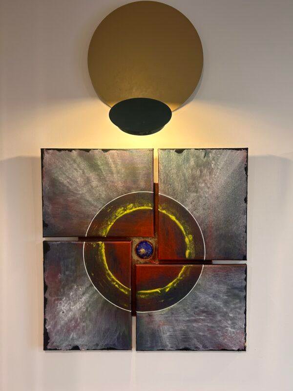 Pour – pillon – l’abstrait, c’est remplacer les mots par des couleurs en jouant avec l’eau, le vent, le feu et les matériaux. Son plaisir est d’inviter, de partager et de laisser aller à l’imagination les contrastes et les sensations de profondeurs. Et c’est ne pas chercher à plaire mais à faire du bien …