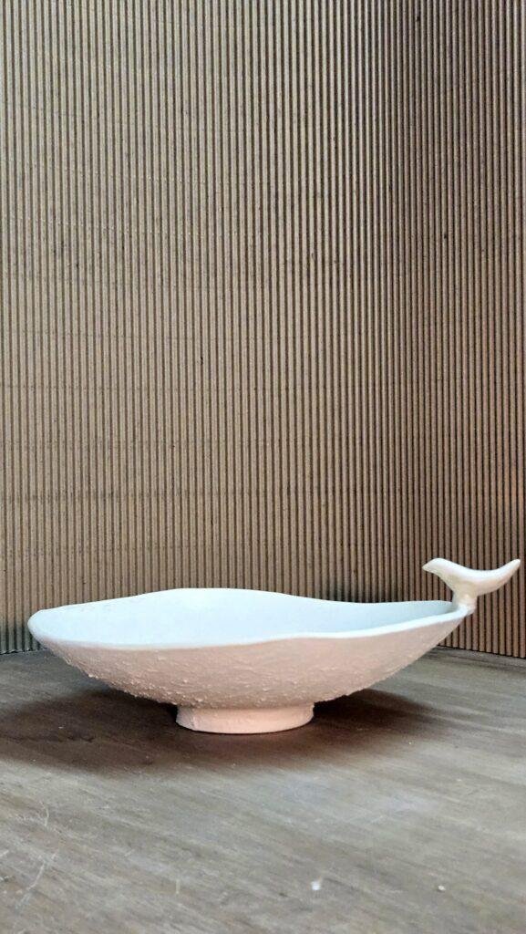 Coupe à fruits en grès blanc.