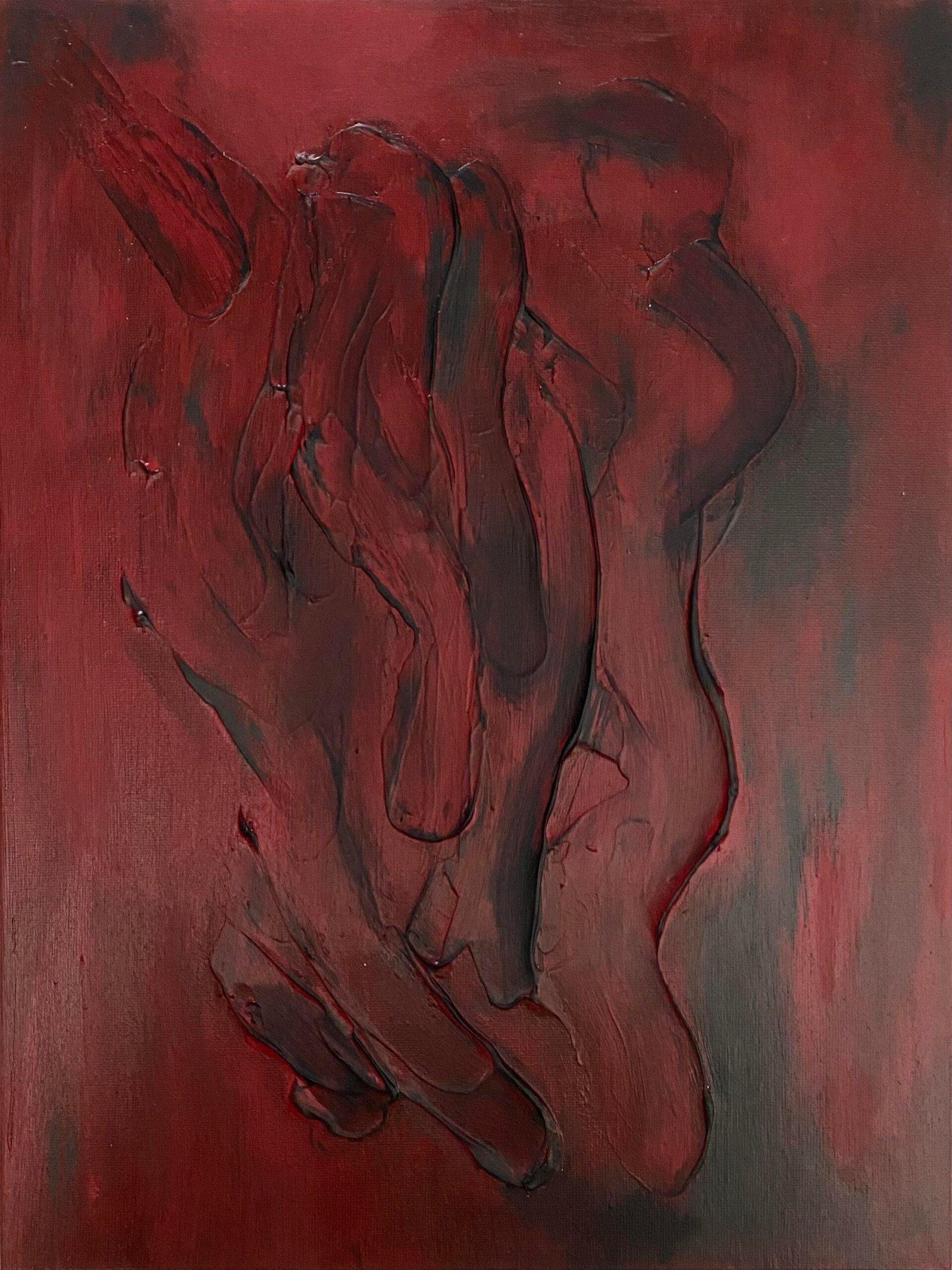 Cette toile fait suite à « Sensualité », et reprend cette idée de mouvement du corps, comme une danse.