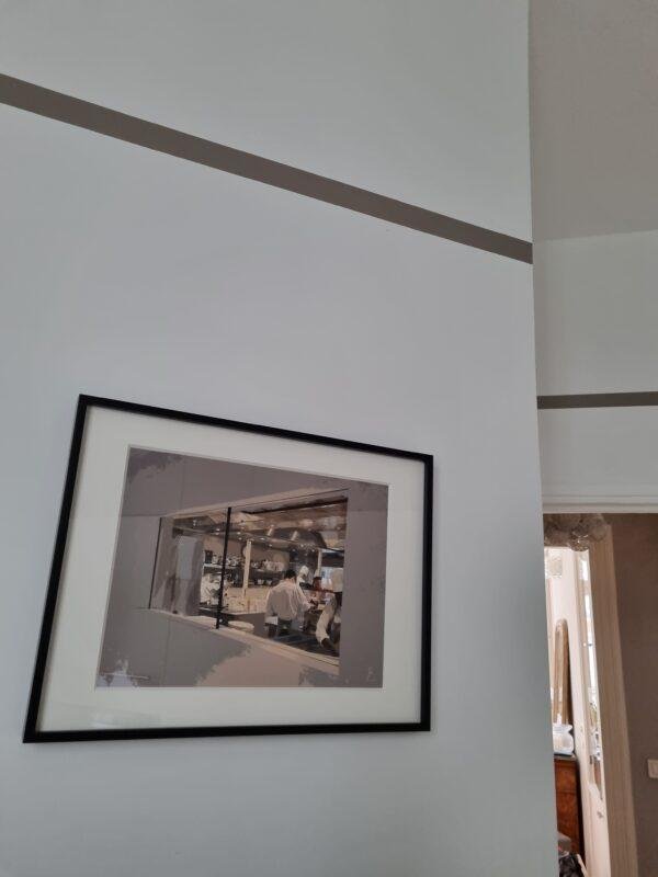 Photographie des cuisines en action d’un restaurant parisien.