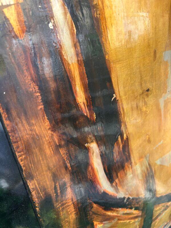 Ils sont nés d’une alliance entre la technique ancienne ( Chine, Japon) et les matériaux nouveaux . Le support reste le bois qu’il est nécessaire d’apprêter pour accueillir le décor (feuilles d’argent, de cuivre oxydées et d’or) avant de passer les multiples couches de vernis poncées après chaque application.
