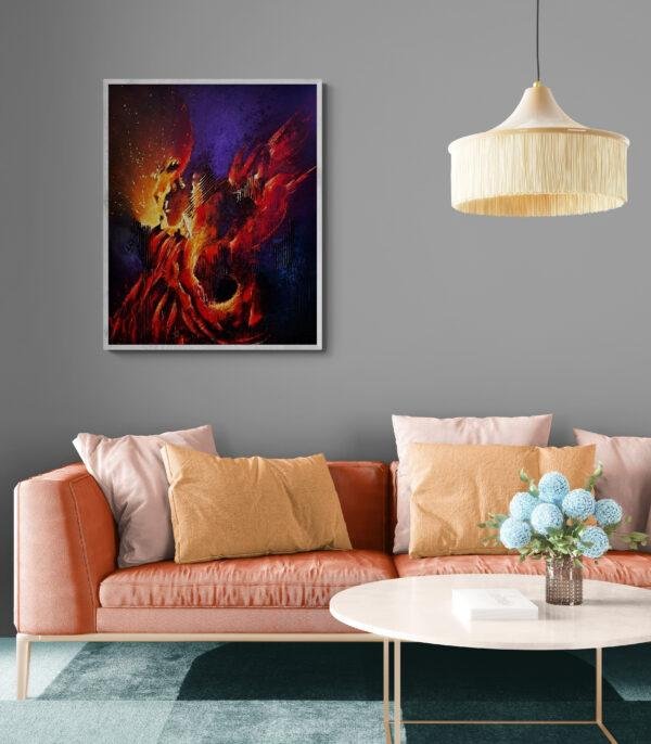 Découvrez cette toile dans laquelle l’artiste fusionne passion et mystère par l’intermédiaire d’une palette incandescente et