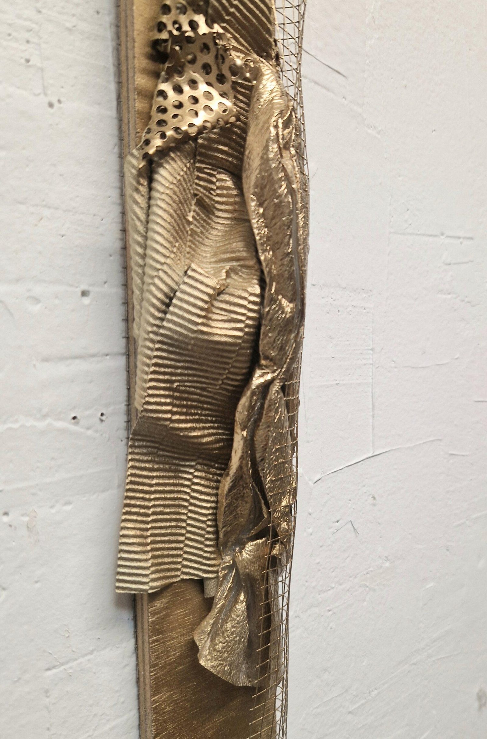Posée sur une lame de bois, une robe de fer sur un drapé signe de protection.