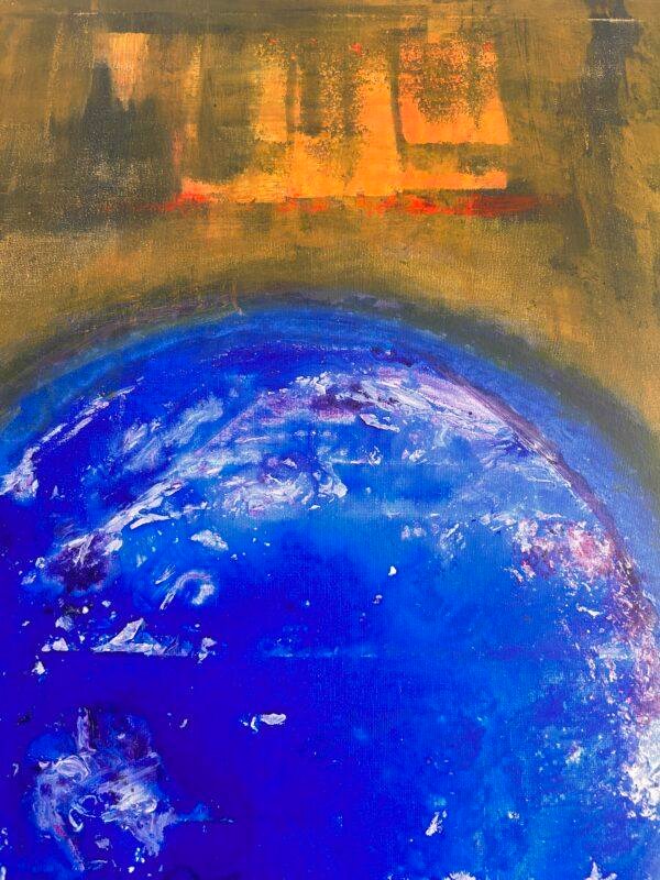La terre, notre planète bleue est présente au centre de nos atermoiements. Tout autour , les faces cachées s’invitent en mode subtil , colorées ,laissant percevoir notre introspection par petites touches émotionnelles .