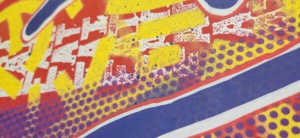 Peinture acrylique, bombe de peinture, marqueurs sur panneau MDF 80 x 40 cm