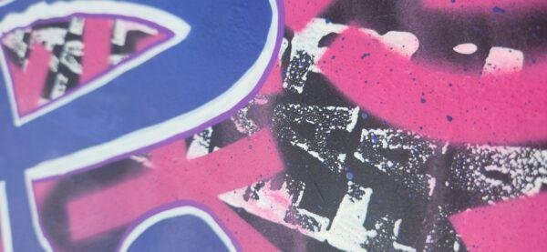 Peinture acrylique, bombe de peinture et marqueurs sur panneau MDF 80 x 40 cm