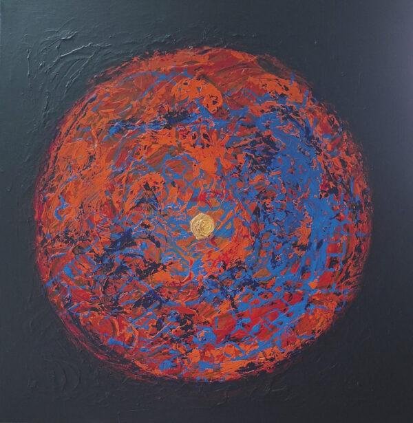 Au centre de l’œuvre, un noyau d’or palpite, comme une étoile secrète prête à éclore.