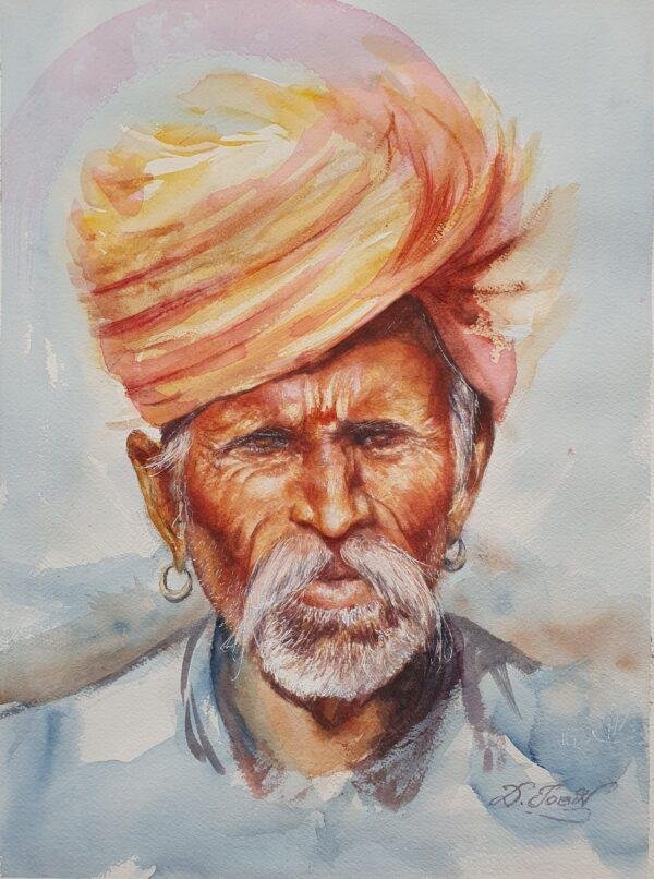 Aquarelle sur papier d’Arches 300g, Fermier Indien