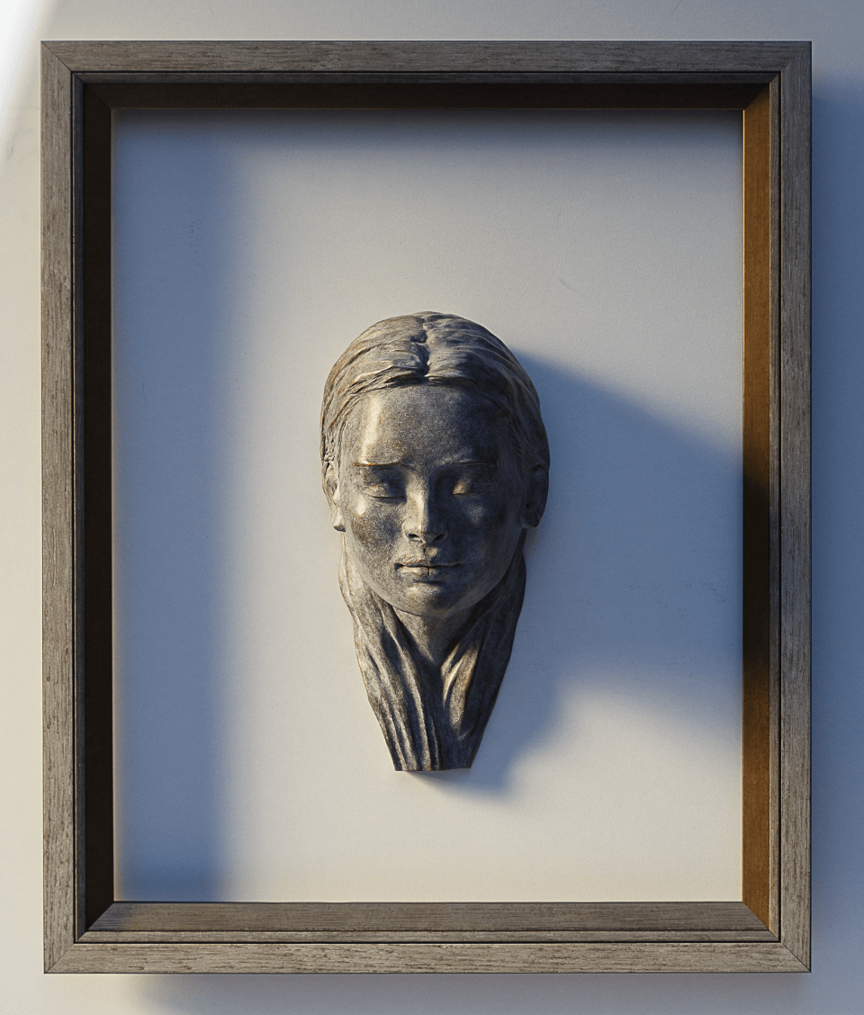 Cadre : 57 x 47 x 4 cm (sculpture murale – peut être livrée sans cadre)