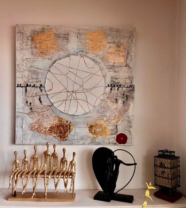 Février 2025 – 80 cm X 80 cm – Acryliques, encres, mixed, or