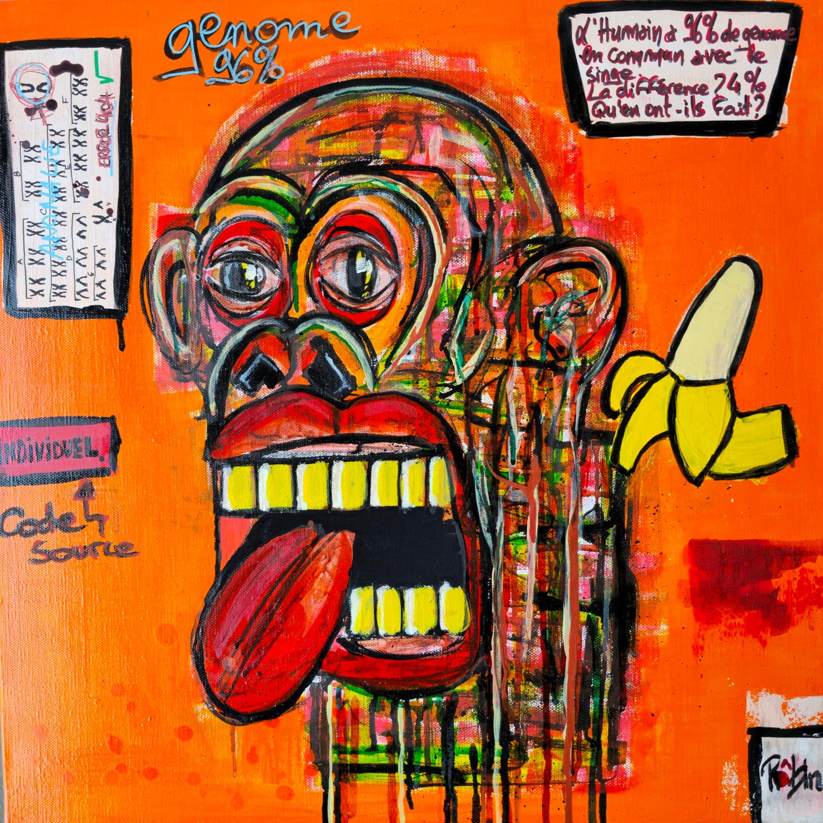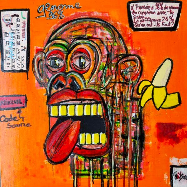 J’ai utilisé un fond orange vif car il me rappelle le feu, la base de notre évolution.