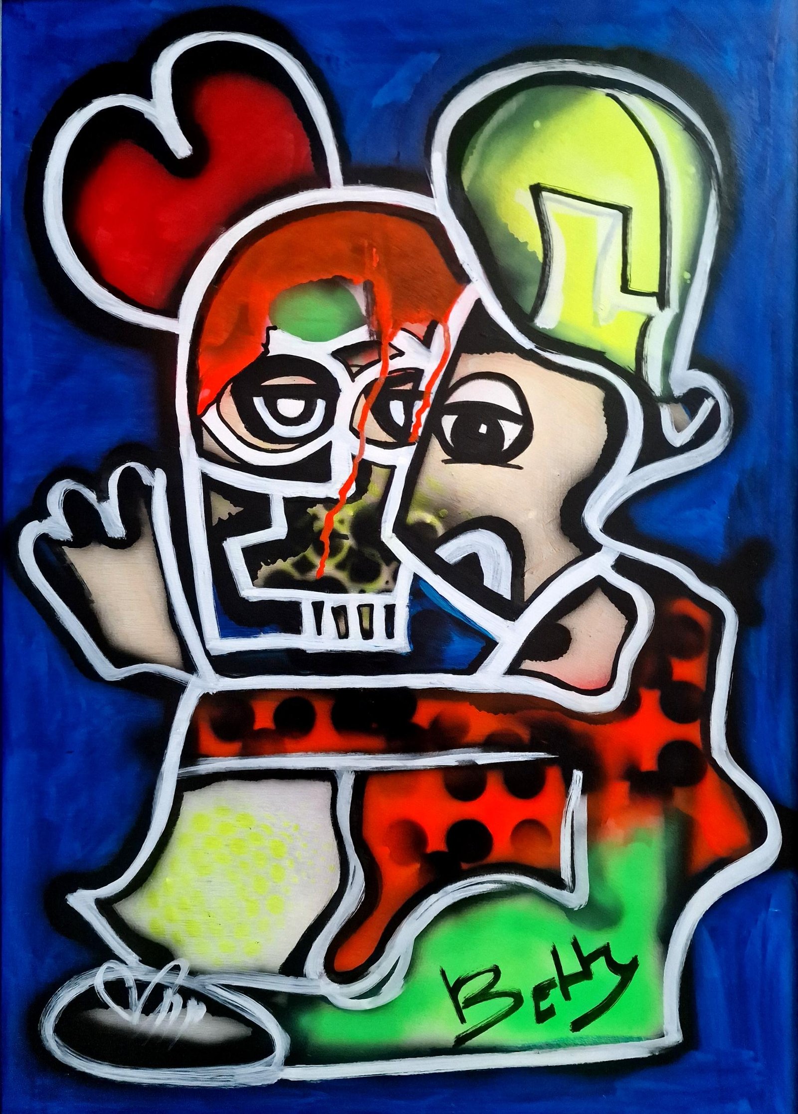 Technique mixte en acrylique ( bombe aérosol, marqueur, Peinture )