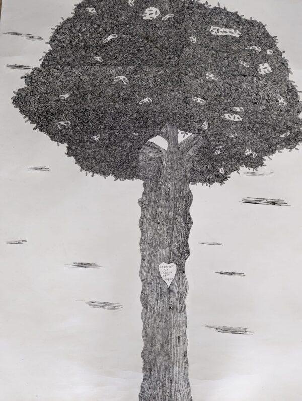 Cette oeuvre a été réalisée à la main à l’encre de Chine. Elle témoigne de mon amour pour la Nature et de la nécessité d’apprendre de celle-ci en la préservant.