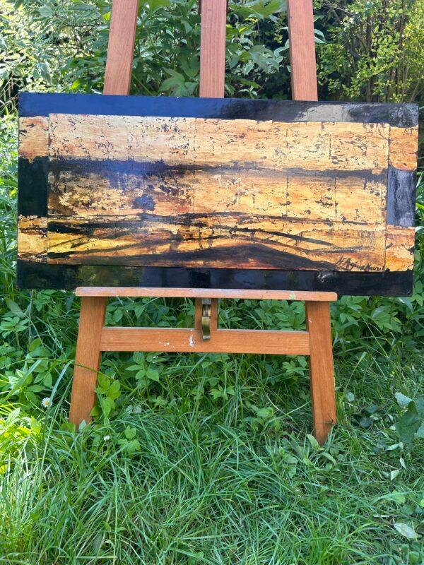 Ils sont nés d’une alliance entre la technique ancienne ( Chine, Japon) et les matériaux nouveaux . Le support reste le bois qu’il est nécessaire d’apprêter pour accueillir le décor (feuilles d’argent, de cuivre oxydées et d’or) avant de passer les multiples couches de vernis poncées après chaque application.
