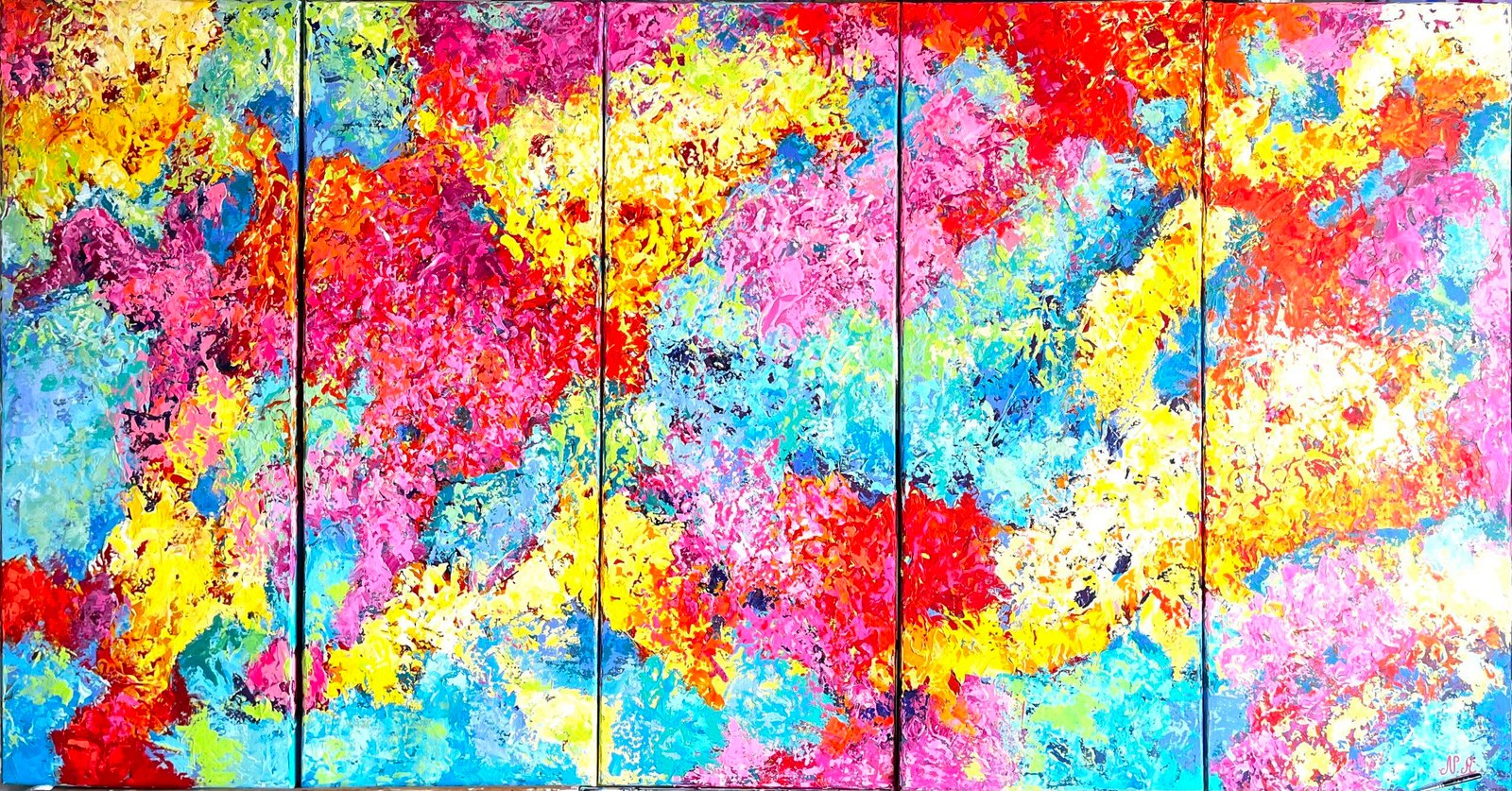 Quintyptique  sur toile acrylique au couteau