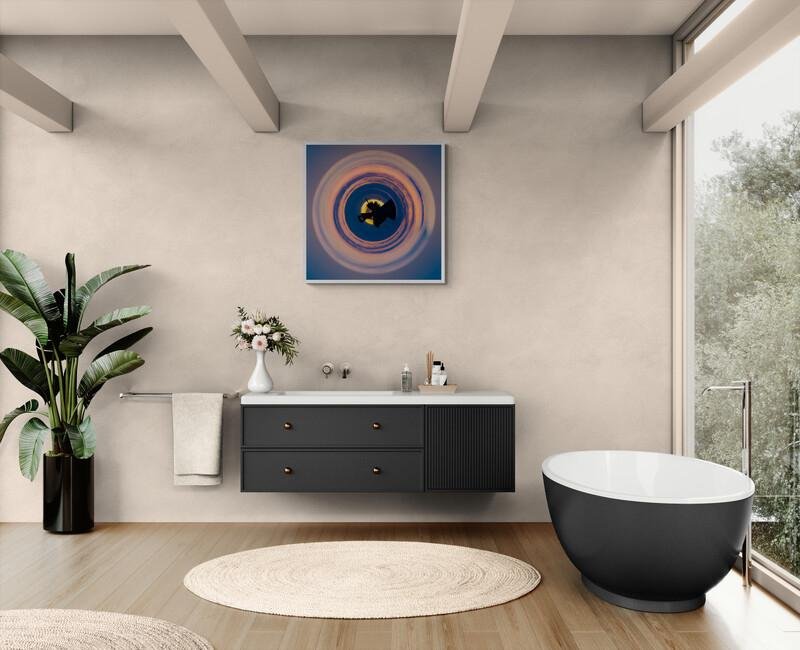 Impression 80×80 cm sur Chromaluxe brillant (subligraphie).