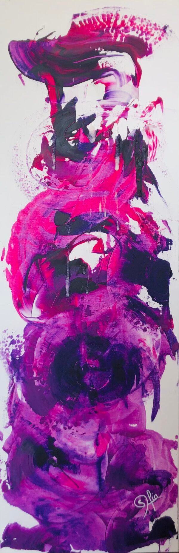 L’âme incarnée arrive en ce monde avec ses différentes vies (formant le chapeau sur le haut), ses différents visages, et programme ses différentes grandes épreuves de vie à venir pour son évolution (la tête ). Et dans le corps / ses corps se trouvent tout l’enracinement dans ses mondes , ses univers . Le Violet fait appel ici à la présence du spirituel dans la matière, le rose l’énergie de l’amour et le blanc, la naissance de l’Etre.