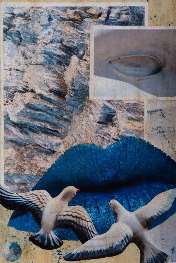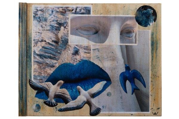 Panneau original collage sur bois / Techniques mixtes H40xL50, non encadré (possible sur demande et devis par encadreur professionnel, caisse américaine)
