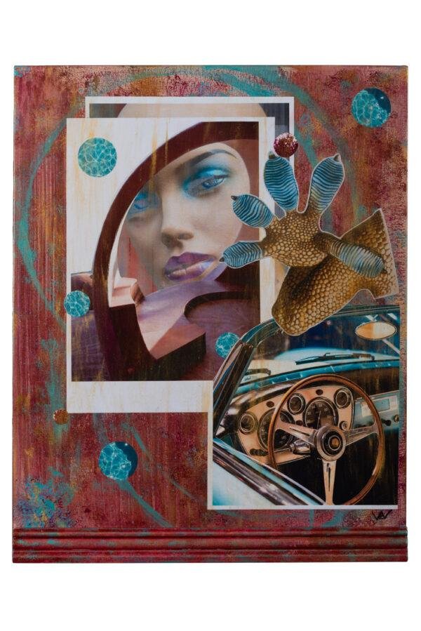 Panneau original collage sur bois/Techniques mixtes H40xL50, non encadré (possible sur demande et devis par encadreur professionnel, caisse américaine)