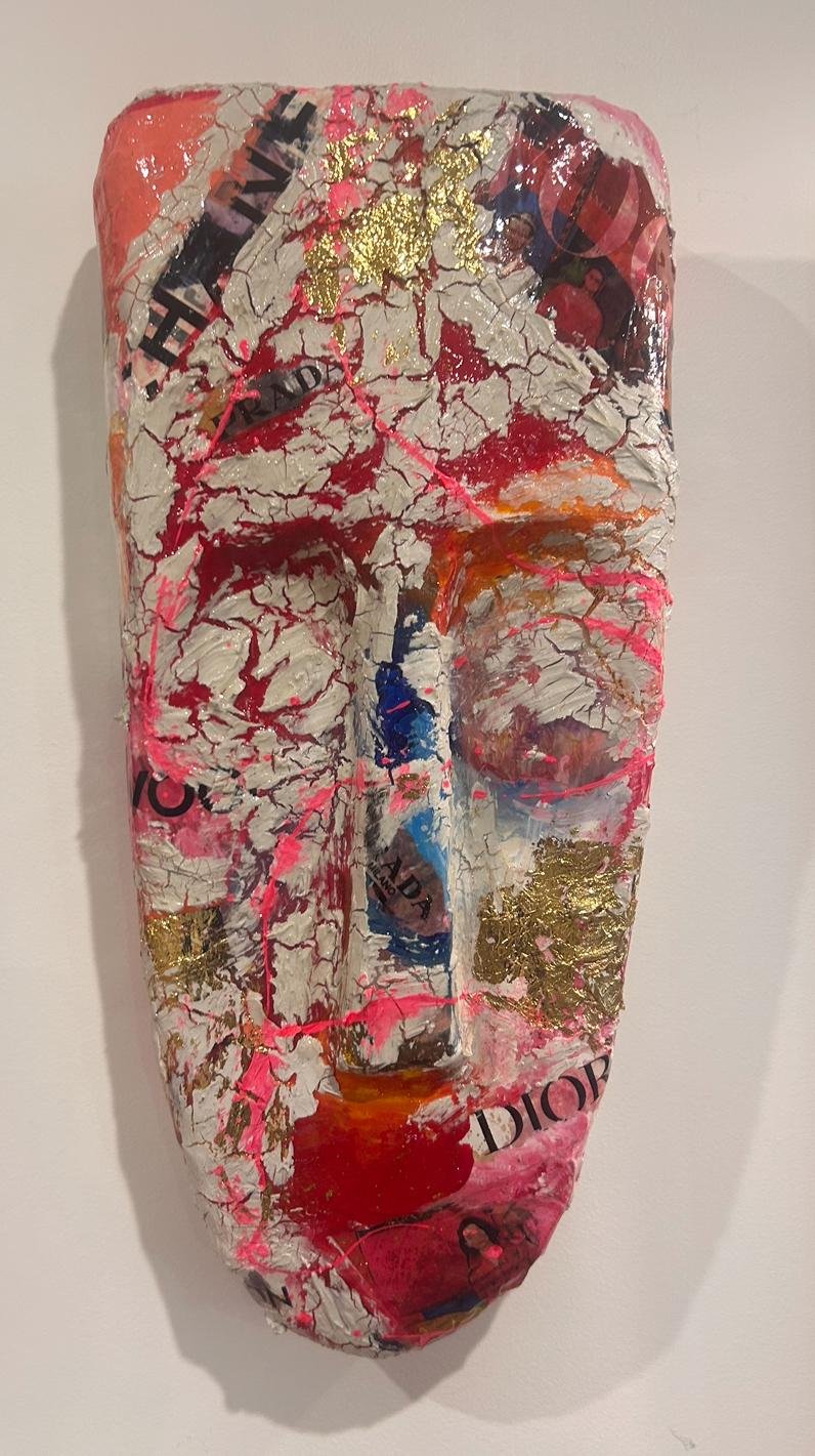 Masque réalisé en plâtre , résine et acrylique