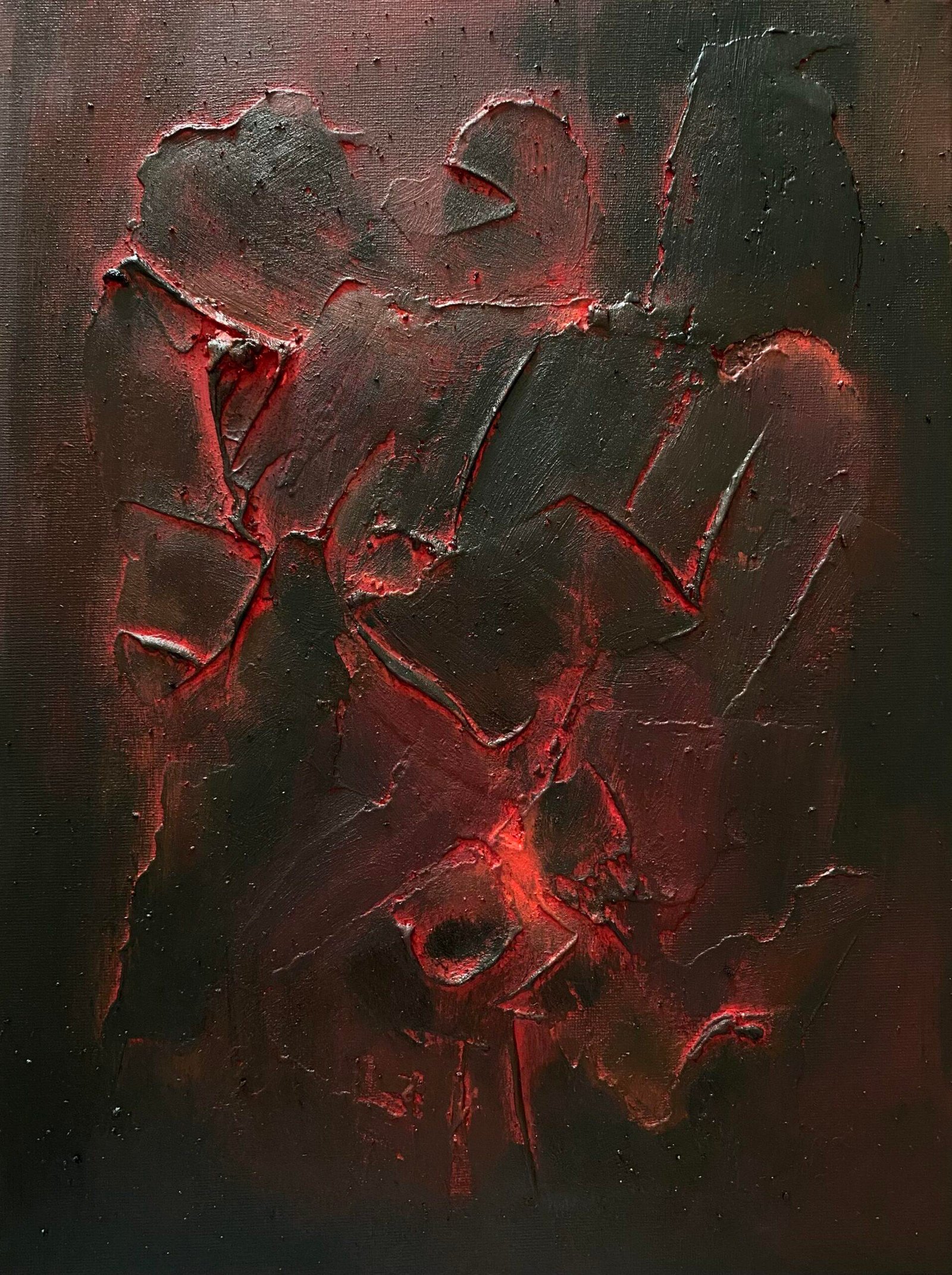 Je l’ai intitulé « Mémoire », car chacun d’entre nous a ce devoir de mémoire. J’y perçois plusieurs silhouettes, bienveillantes et apaisantes, ainsi qu’un œil, ou un trou béant et lumineux. Peut-être cette lumière saura-t-elle éclairer et guider certains esprits perdus…