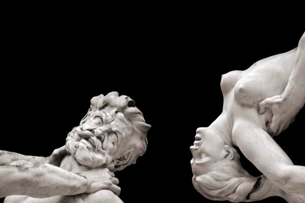 Le marbre montre un Centaure, à l’oreille pointue, empoignant cette femme, mais étranglé par un Lapithe, qui tente de la sauver.