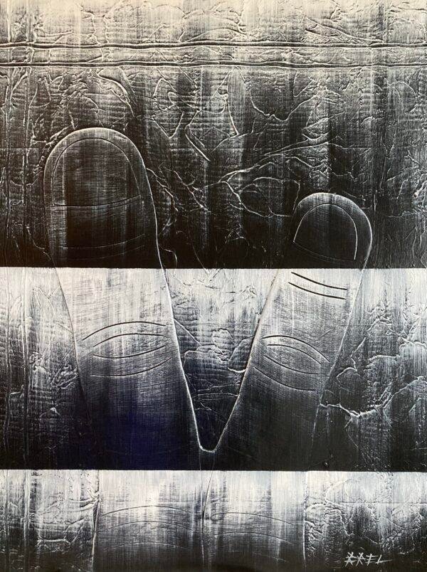 Peinture acrylique et résine sur tableau en fibre de verre .