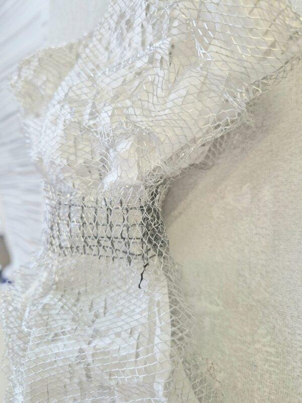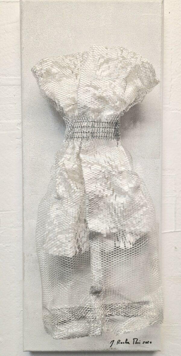 La légèreté de ces oeuvres qui sont pourtant des grillages est impressionnante. On croirait qu’elles vont s’envoler, ces robes.