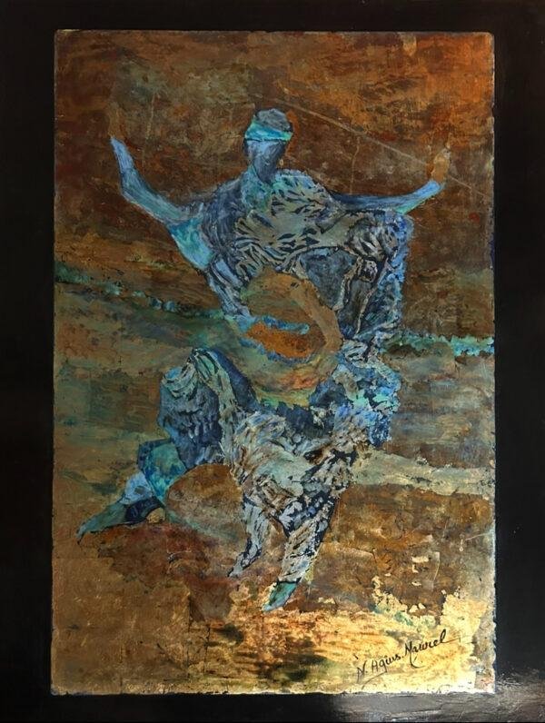 Ils sont nés d’une alliance entre la technique ancienne ( Chine, Japon) et les matériaux nouveaux . Le support reste le bois qu’il est nécessaire d’apprêter pour accueillir le décor (feuilles d’argent, de cuivre oxydées et d’or) avant de passer les multiples couches de vernis poncées après chaque application.