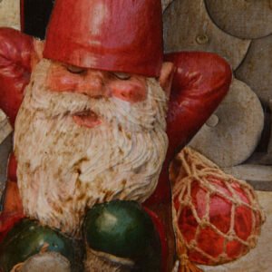 - Technique mixte : collage, peinture acrylique et finition vernis.