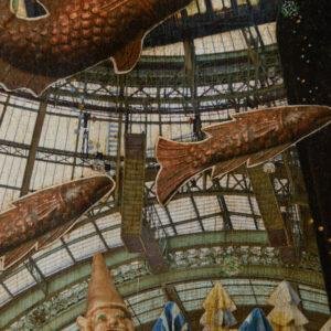 - le Ballon papillon central est en papier recyclé. Le fond est peint à la bombe de peinture acrylique sur laquelle il a été collé différentes exclamations issues de BD.