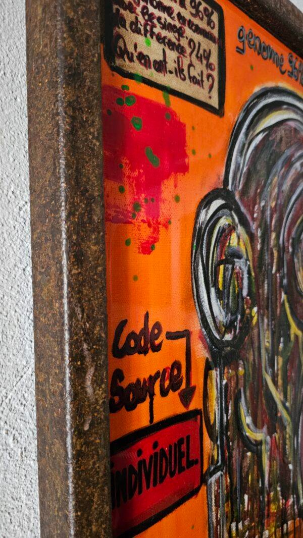 Ce message est intensifié par les mots « CODE SOURCE » et une flèche désignant l’encart, invitant à une réflexion profonde sur ce qui fait notre