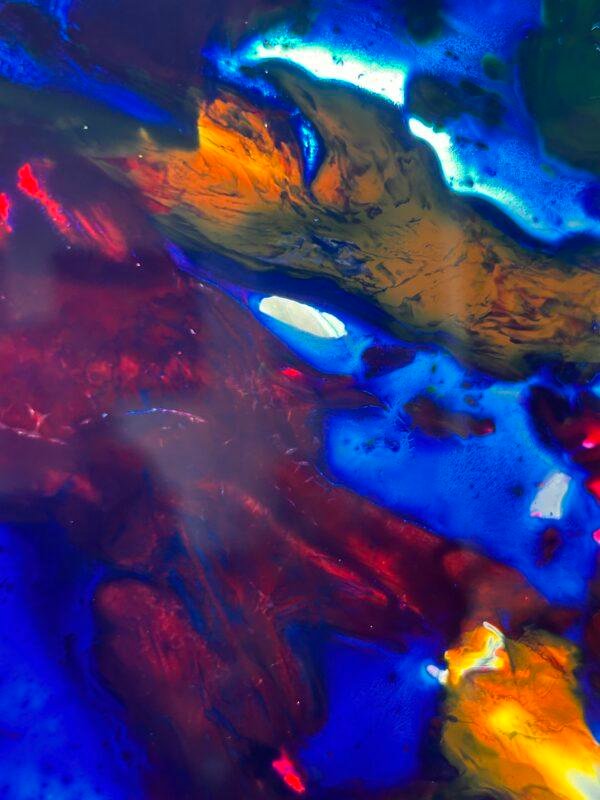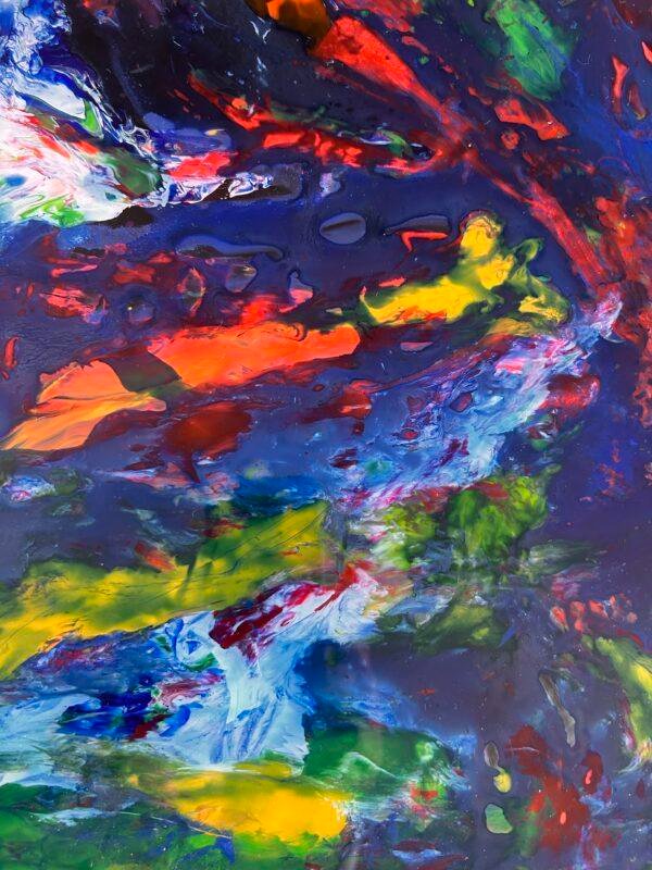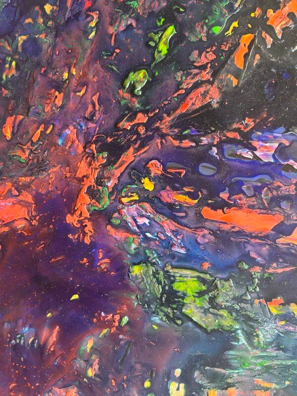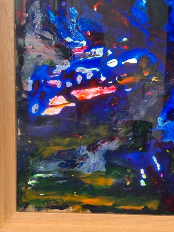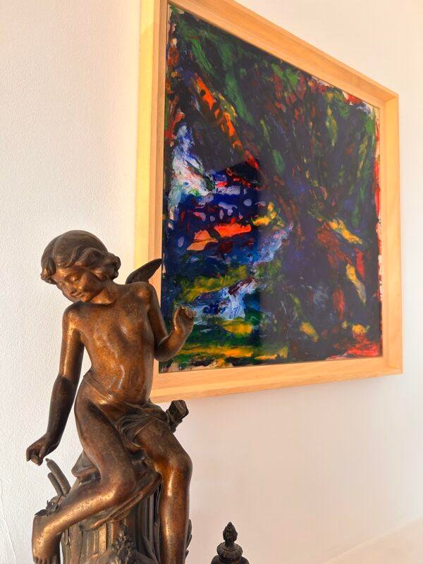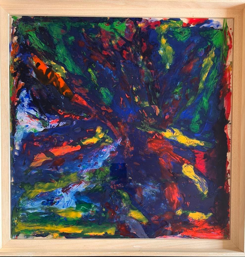 Septembre 2023– 50cm x 50cm – Plexiglass avec encadrement caisse américaine bois naturel Acryliques et encres