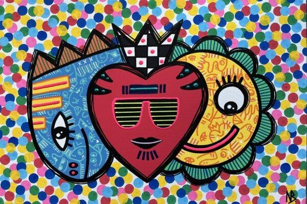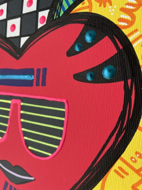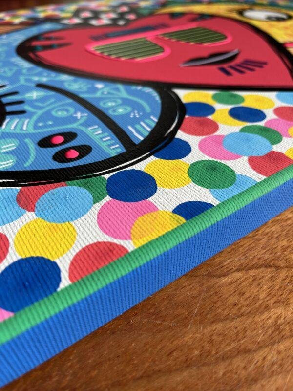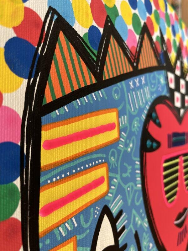 J’ai réalisé cette peinture afin qu’elle serve d’ornement aux étiquettes de la cuvée 2024 de vin blanc des Chais du Port de la Lune à Bordeaux. J’ai volontairement travaillé des couleurs estivales à l’acrylique et à la gouache, avec quelques touches en relief, afin que l’œuvre épouse à merveille sa jolie bouteille.