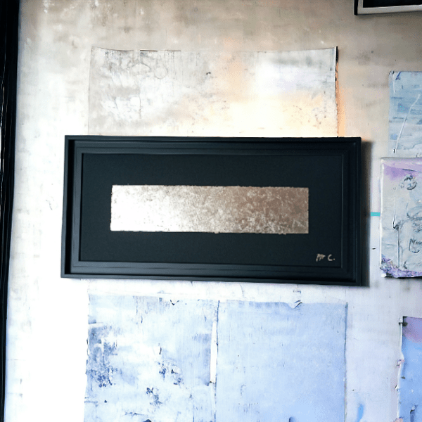 Les feuilles sont posées sur du papier épais coloré (voir gamme), puis encadrées dans une caisse americaine. La création est signé » Mr C. « . C’est une pièce unique, 1 or / 1 couleur / 1 taille. La référence d’or utilisée est inscrite sur le certificat d’authenticité.