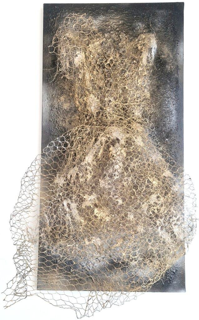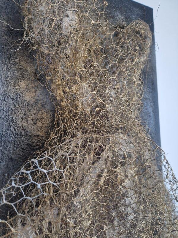 Acrylique sur toile, grillage, graviers
