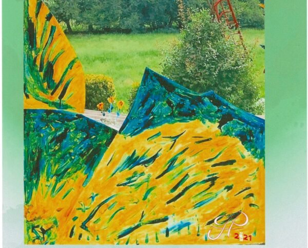 Oeuvre d’Art de l’Artiste … aprés la catastrophe d’un violent coup de vent et le bris de la vitre de la porte.