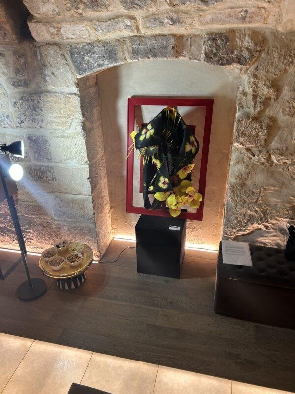 Avec cette œuvre, j’ai cherché à brouiller les frontières entre peinture et sculpture en utilisant le vêtement comme support et comme volume. J’ai choisi de revisiter la veste « Bar » de Dior, symbole fort de l’élégance occidentale et de la construction du corps féminin, pour la détourner de sa fonction utilitaire et la transformer en objet artistique autonome. Le vêtement devient alors un espace d’expérimentation plastique.